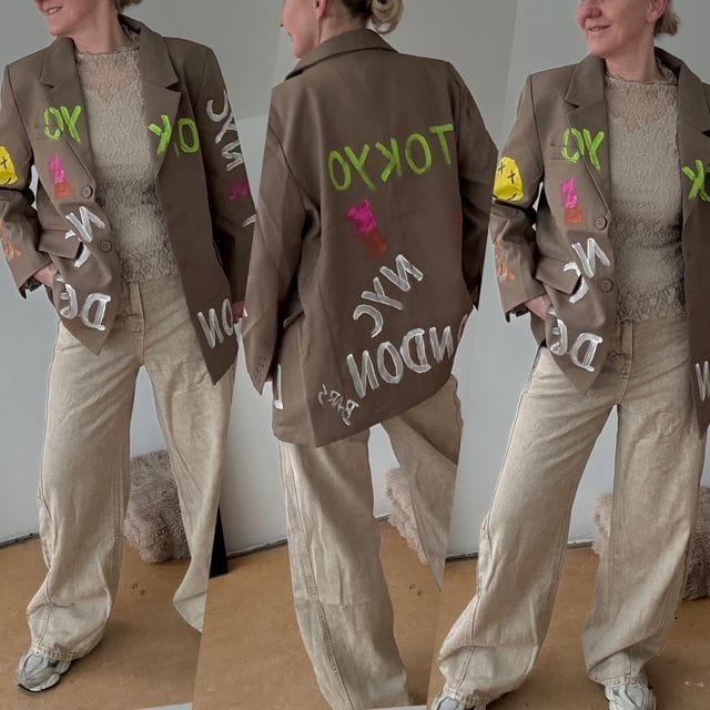 Geweldige Blazer Gold&Silver .Byzondere details verkrijgbaar in 2 maten.